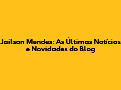 Jailson Mendes: As Últimas Notícias E Novidades Do Blog