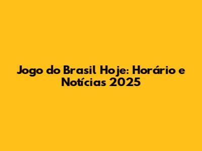 Jogo Do Brasil Hoje: Horário E Notícias 2025