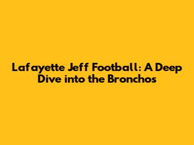 Hey guys! Ever heard of Lafayette Jeff football? If you're a sports enthusiast, especially a football fanatic, you've probably stumbled upon this name. For those of you who might be new to the game or just curious, let's dive into the exciting world of Lafayette Jefferson High School's football program, affectionately known as the Bronchos. We're going to explore their history, celebrate their achievements, and maybe even reminisce about some legendary moments. Buckle up, because we're about to go on a thrilling ride through the gridiron glory of the Lafayette Jeff Bronchos!