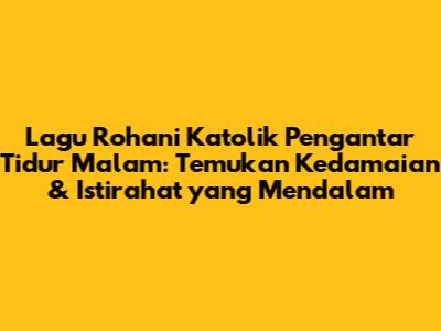 Hai guys! Pernah nggak sih kalian merasa kesulitan tidur di malam hari? Pikiran ruwet, badan capek, tapi mata susah diajak kompromi. Nah, buat kalian umat Katolik yang sering mengalami hal ini, ada solusi jitu nih: lagu rohani Katolik pengantar tidur malam. Bayangin, sebelum memejamkan mata, kalian ditemani alunan musik yang menenangkan, lirik-lirik yang menguatkan iman, dan suasana yang penuh damai. Penasaran kan, gimana caranya lagu-lagu ini bisa membantu kalian tidur nyenyak dan bangun dengan semangat baru? Yuk, kita bahas tuntas!