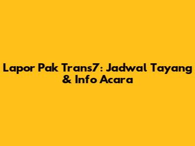 Lapor Pak Trans7: Jadwal Tayang & Info Acara