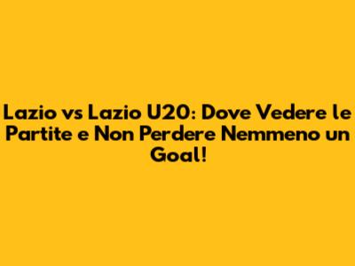 Lazio Vs Lazio U20: Guida Completa Per Non Perdere Nulla!