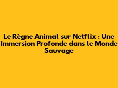 Le Règne Animal Sur Netflix : Tout Ce Que Vous Devez Savoir