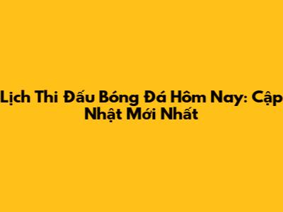 Lịch Thi Đấu Bóng Đá Hôm Nay: Cập Nhật Mới Nhất