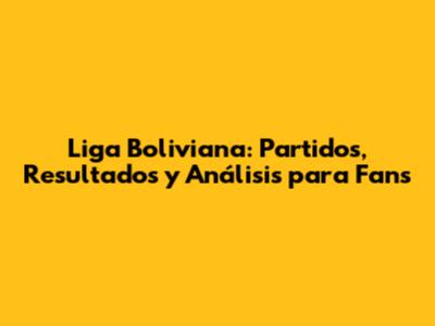 Liga Boliviana: Partidos, Resultados Y Análisis Para Fans