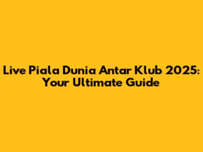 Live Piala Dunia Antar Klub 2025: Everything You Need To Know!
