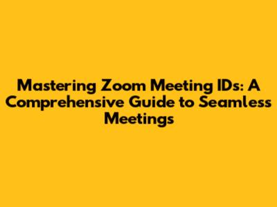 Mastering Zoom Meeting IDs: A Comprehensive Guide