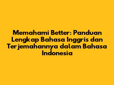 Memahami 'Better': Bahasa Inggris Dan Terjemahannya Dalam Bahasa Indonesia