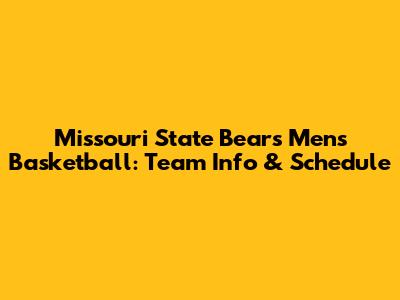 Missouri State Bears Men's Basketball: Team Info & Schedule