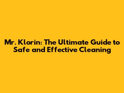 Mr. Klorin: The Ultimate Guide To Safe And Effective Cleaning