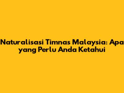 Naturalisasi Timnas Malaysia: Apa Yang Perlu Anda Ketahui