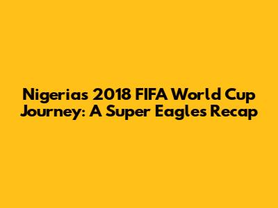 Nigeria's 2018 FIFA World Cup Journey: A Super Eagles Recap