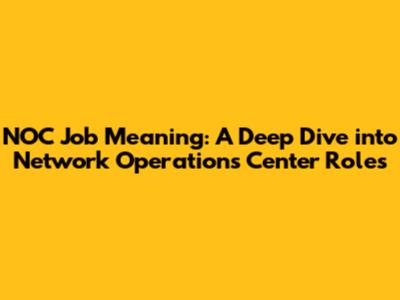 NOC Job Meaning: A Deep Dive Into Network Operations Center Roles