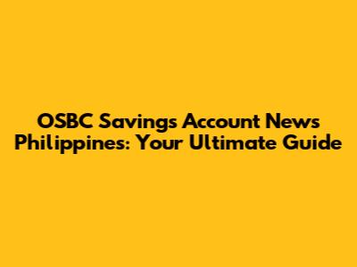 Latest News and Updates on OSBC Savings Accounts in the Philippines