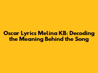 Oscar Lyrics: Melina KB's Powerful Song Explained