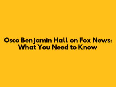 Osco Benjamin Hall On Fox News: What You Need To Know