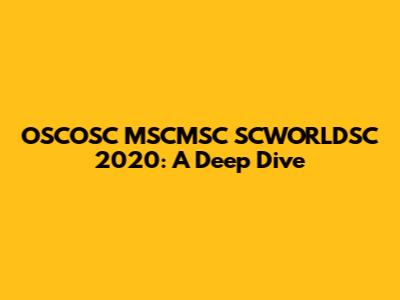 OSCOSC MSCMSC SCWORLDSC 2020: A Deep Dive