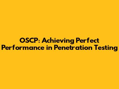 OSCP: Achieving Perfect Performance In Penetration Testing