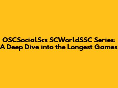 OSCSocialSc's SCWorldSSC Series: The Longest Games