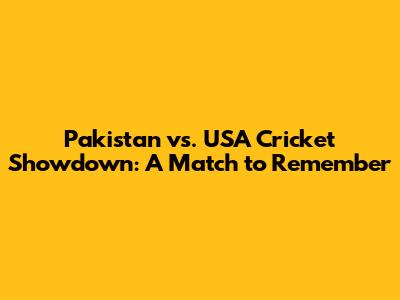 Pakistan Vs. USA Cricket Showdown: A Match To Remember