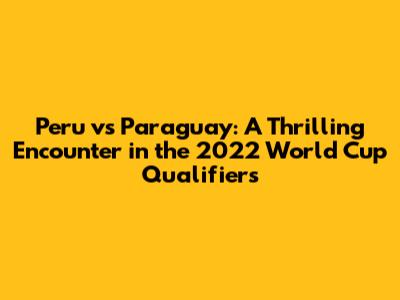 Hey guys! Let's dive deep into the electrifying match between Peru and Paraguay during the 2022 World Cup Qualifiers. This wasn't just any game; it was a high-stakes battle filled with drama, passion, and unforgettable moments. We'll break down everything from the key plays and strategies to the impact this match had on both teams' journey to the World Cup. Get ready for a thrilling ride as we revisit this epic clash!