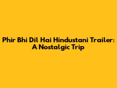 Phir Bhi Dil Hai Hindustani Trailer: Nostalgia & Review