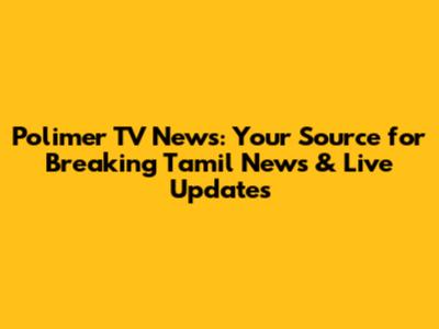 Polimer TV News: Breaking Tamil News & Live Updates