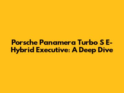 Hey guys! Let's dive into the extraordinary world of the Porsche Panamera Turbo S E-Hybrid Executive. This isn't just any car; it's a statement—a blend of blistering performance, cutting-edge hybrid technology, and executive-level luxury. If you're looking for a vehicle that can thrill you on the Autobahn and cosset you on your daily commute, this Panamera variant might just be your ultimate ride. We're going to break down what makes this car so special, from its monstrous powertrain to its opulent interior and everything in between. Buckle up, because this is going to be an exciting journey!