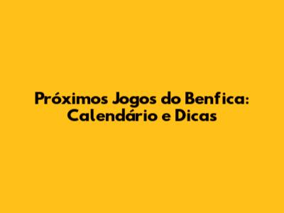 Próximos Jogos Do Benfica: Calendário E Dicas