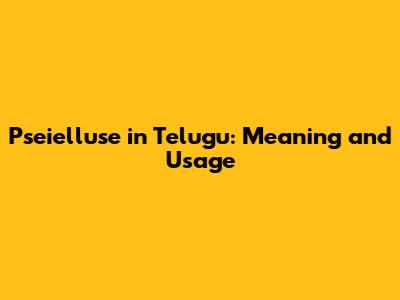 Pseielluse In Telugu: Meaning And Usage