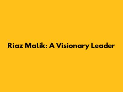 Riaz Malik: A Visionary Leader