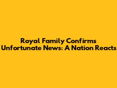 Royal Family Confirms Unfortunate News