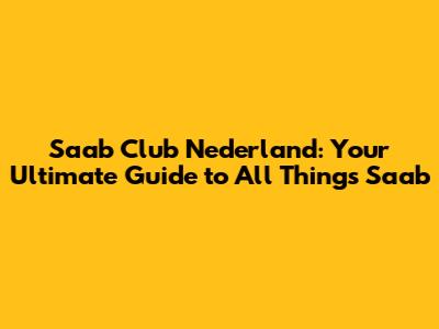 Saab Club Nederland: Your Ultimate Guide