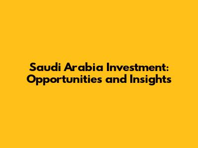 Saudi Arabia Investment: Opportunities And Insights