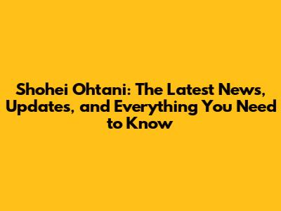 Shohei Ohtani: Latest News, Updates & What You Need To Know