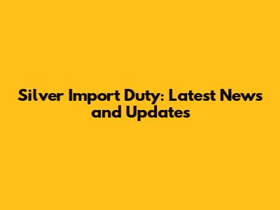 Recent Developments in Silver Import Duty Policies