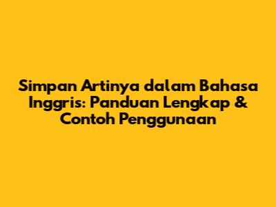 Simpan Dalam Bahasa Inggris: Panduan Lengkap & Contoh Penggunaan