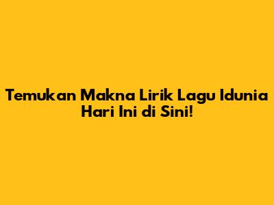 Temukan Makna Lirik Lagu 'Idunia Hari Ini' Di Sini!