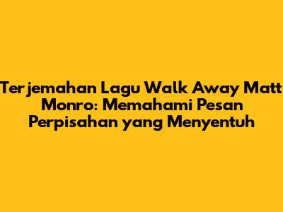 Terjemahan lagu Walk Away Matt Monro adalah karya seni yang luar biasa yang berhasil menangkap esensi dari pengalaman manusia tentang cinta, kehilangan, dan perpisahan. Liriknya yang sederhana namun penuh makna, dipadu dengan melodi yang indah, membuat lagu ini menjadi sangat menyentuh dan relevan bagi pendengar di seluruh dunia. Lagu ini mengingatkan kita bahwa hidup seringkali penuh dengan pilihan sulit, dan terkadang, melepaskan adalah cara terbaik untuk menemukan kebahagiaan.