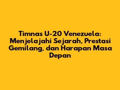Tim nasional sepak bola U-20 Venezuela, atau yang sering disebut sebagai Vinotinto Sub-20, adalah representasi dari sepak bola Venezuela di level usia di bawah 20 tahun. Tim ini memiliki sejarah yang menarik, penuh dengan perjuangan, perkembangan, dan harapan untuk masa depan sepak bola Venezuela. Dalam artikel ini, kita akan menjelajahi lebih dalam mengenai sejarah tim, pencapaian terbaik mereka, serta prospek cerah yang dimiliki oleh para pemain muda Venezuela.