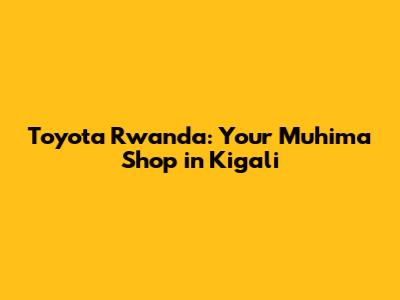 Toyota Rwanda: Your Muhima Shop In Kigali