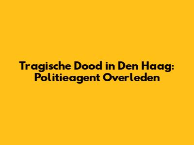 Tragische Dood In Den Haag: Politieagent Overleden