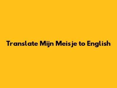 Translate Mijn Meisje To English