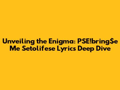 Unlocking The Meaning: Exploring PSE!bring$e Me Setolifese Lyrics