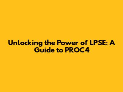 Unlocking The Power Of LPSE: A Guide To PROC4
