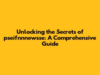 Unlocking The Secrets Of Pseifnnnewsse: A Comprehensive Guide
