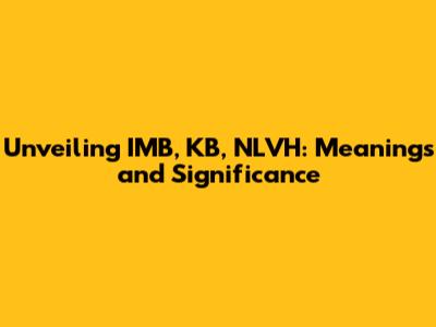 Unveiling IMB, KB, NLVH: Meanings And Significance