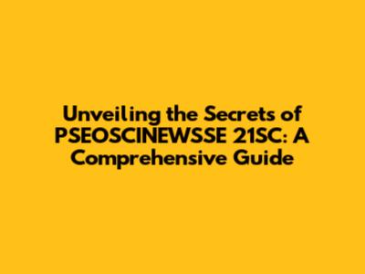 Unveiling The Secrets Of PSEOSCINEWSSE 21SC: A Comprehensive Guide