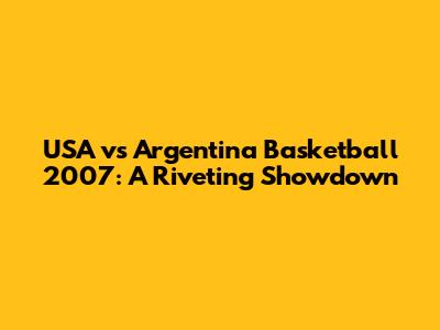 USA Vs Argentina Basketball 2007: A Riveting Showdown