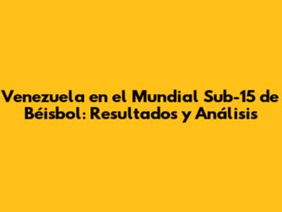 Venezuela En El Mundial Sub-15 De Béisbol: Resultados Y Análisis